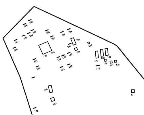 | In 1983 the then visible memorial inscriptions in St Mary’s churchyard were recorded by Alan McGowan. These plans show those memorials that were readable. Click on the relevant ‘stone’ to bring up a window showing the inscription. The link at the bottom of the page takes you to a full list of the inscriptions. |